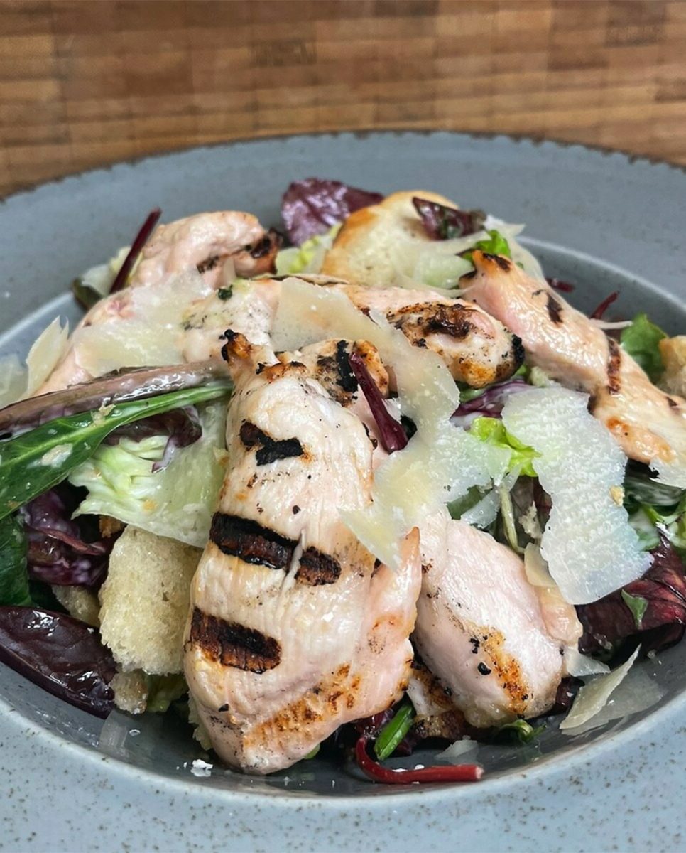 Served with dressed salad & crisps